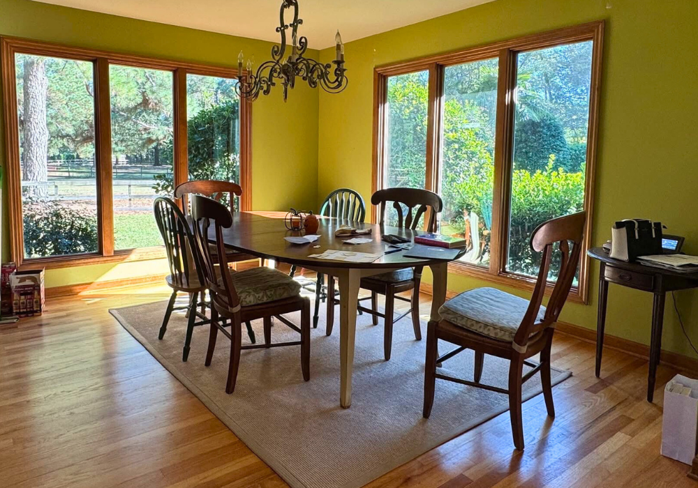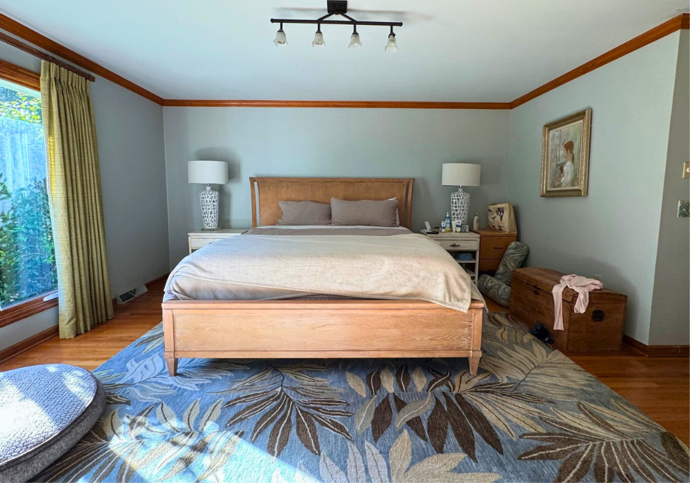 Corrective drywall repairs/replacement and a fresh coat of paint on every wall adds a crisp, brand-new feel. We finished the walls in the warm, inviting tones of ‘Rice Grain’ by Sherwin Williams – the perfect backdrop to the natural light this home offers!